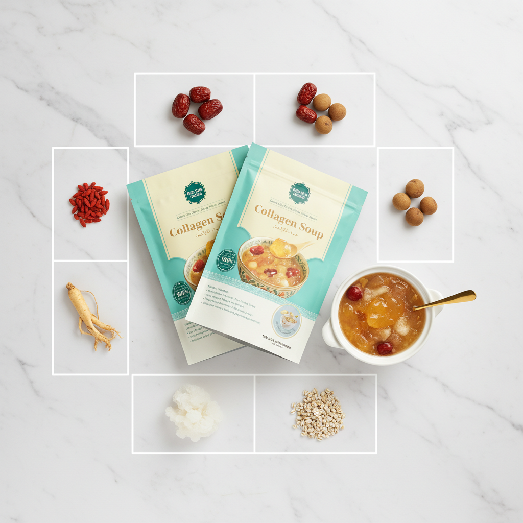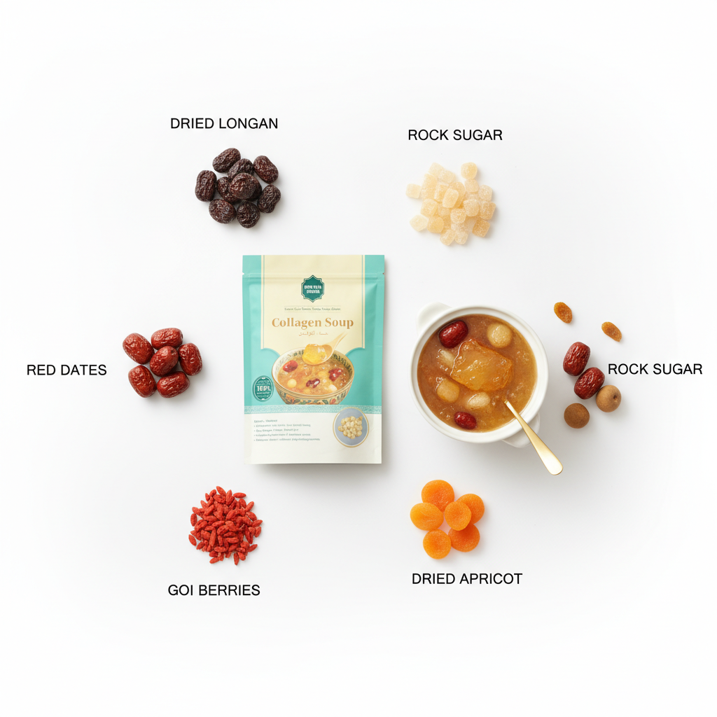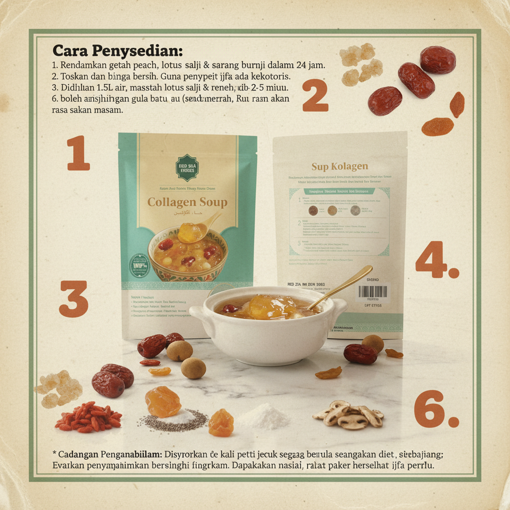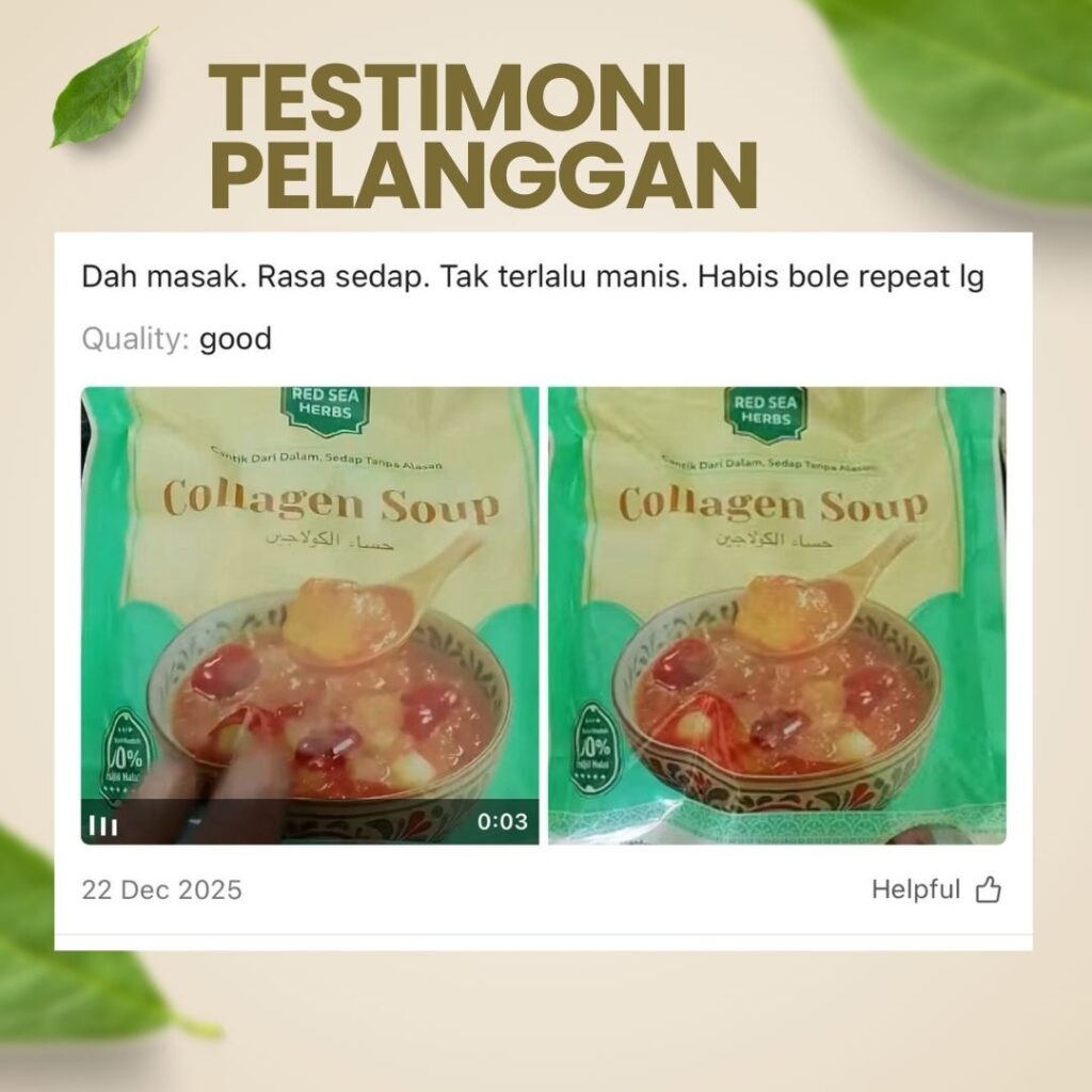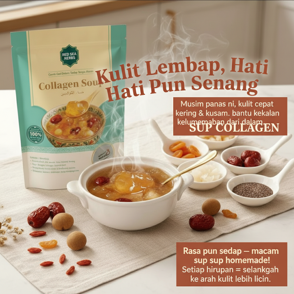 Tak perlu bancuh serbuk atau minum tablet besar. Sup collagen boleh dinikmati panas-panas — lebih syok, lebih mudah konsisten.
