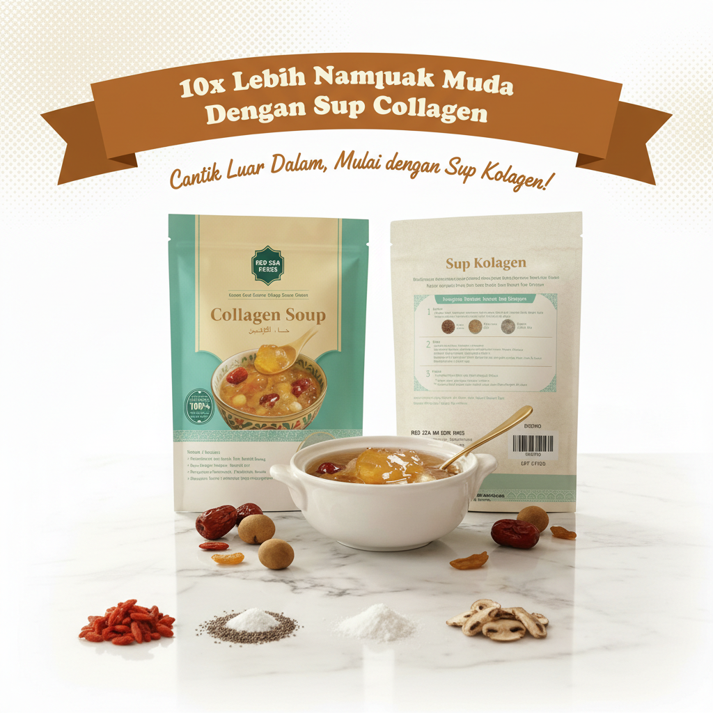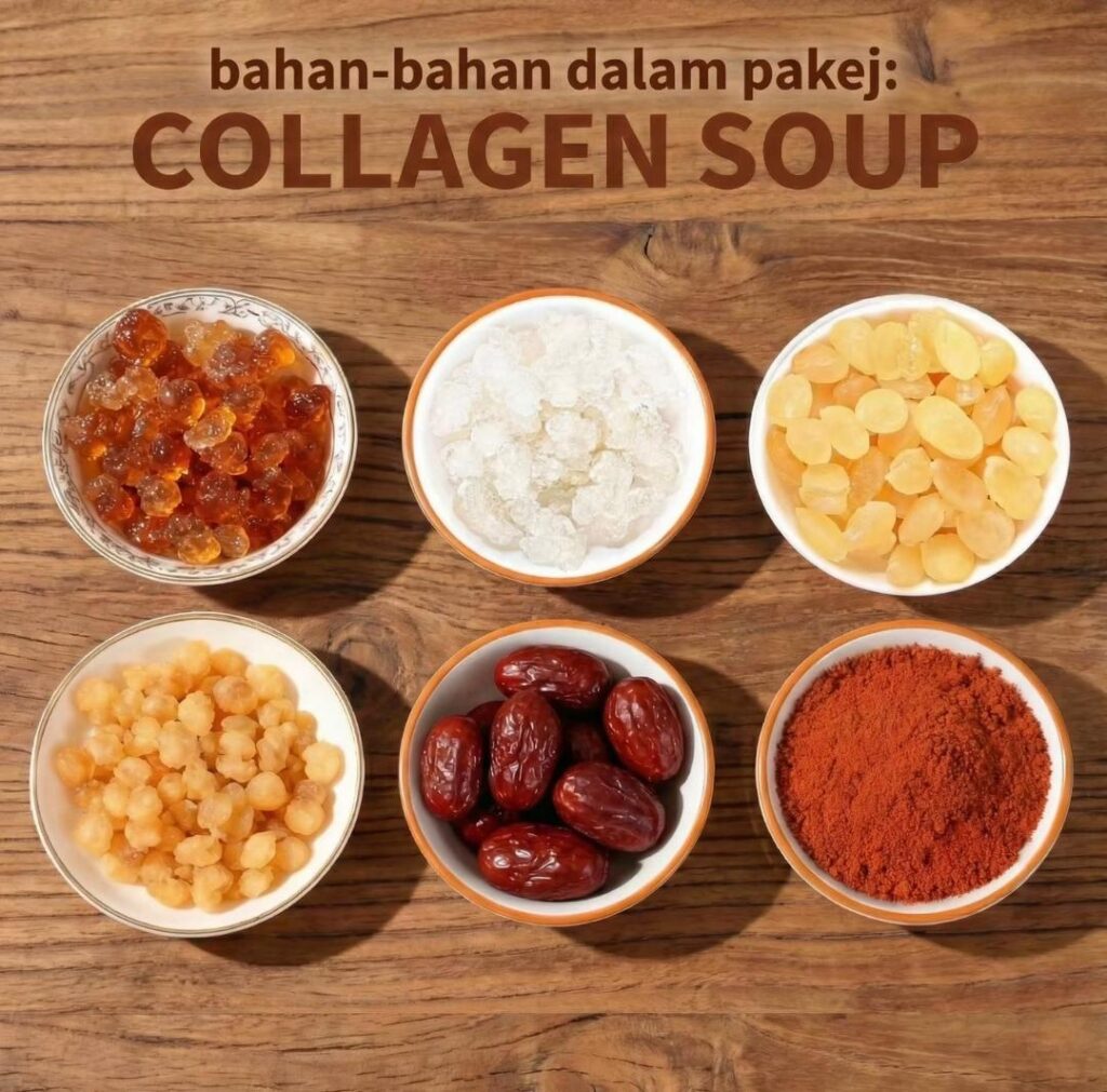 Kolagen membantu memberi struktur pada kulit. Sup collagen menyokong badan mendapatkan nutrisi penting untuk rasa kulit lebih anjal & sihat.